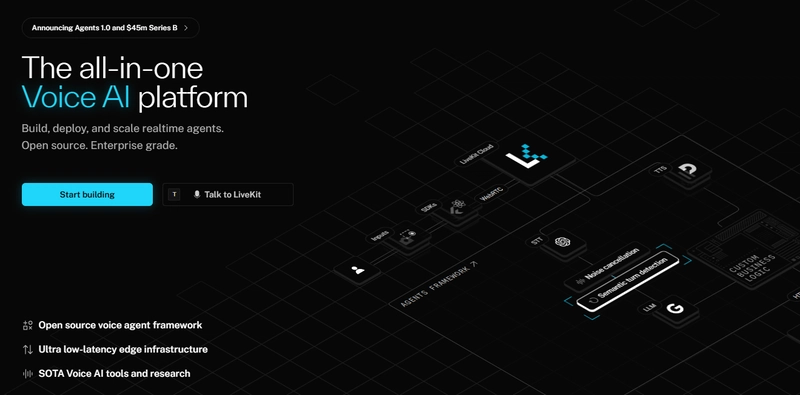 5.LiveKit - Open-source platform for real-time audio and video development. Although it lacks built-in AI capabilities, it provides essential live voice infrastructure for custom implementations.