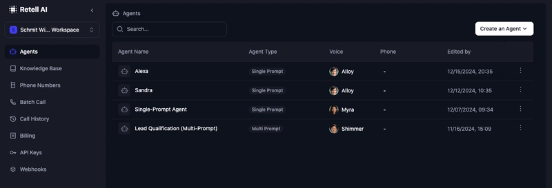 4. Retell AI - Focuses on phone call automation technology. Enables creation of voice agents capable of conducting real-time conversations through traditional phone networks.