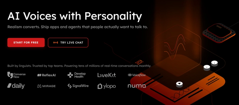 2. Rime - Enables development of conversational AI applications supporting both voice and text modalities. Excels at sophisticated voice workflows, offers extensive integration capabilities, and features an intuitive user interface.