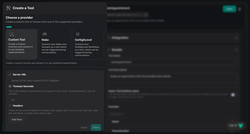 GHL/Make Tools Integration: Vapi enables direct integration with GoHighLevel workflows and Make.com scenarios, allowing voice command triggers for these automations within your agent.