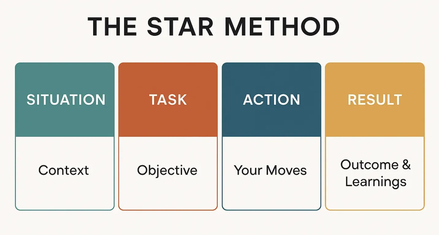 Result (15 seconds): Quantify when possible, but always include what you learned. "We delayed by one week, saw 15% higher conversion in the first month, and I learned to build more buffer time for user testing."