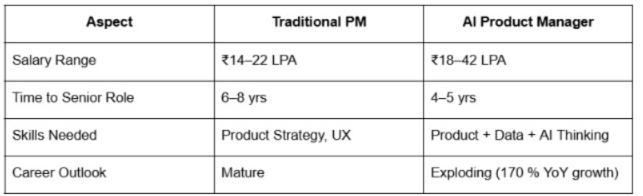 In companies like Swiggy, Paytm, and Razorpay, AI PMs directly influence business KPIs personalization, automation, fraud reduction, and user retention.