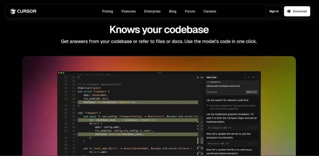- Comprehensive AI Integration: This isn't just filling in code snippets - it generates code, helps debug, and actually understands what's happening across your whole project.