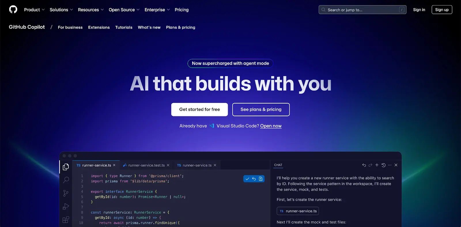 - Agent mode that handles bigger jobs like building new features or hunting down bugs.